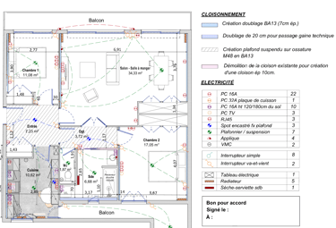 Plans techniques indicatifs pour le positionnement des réseaux, cloisons et sols.